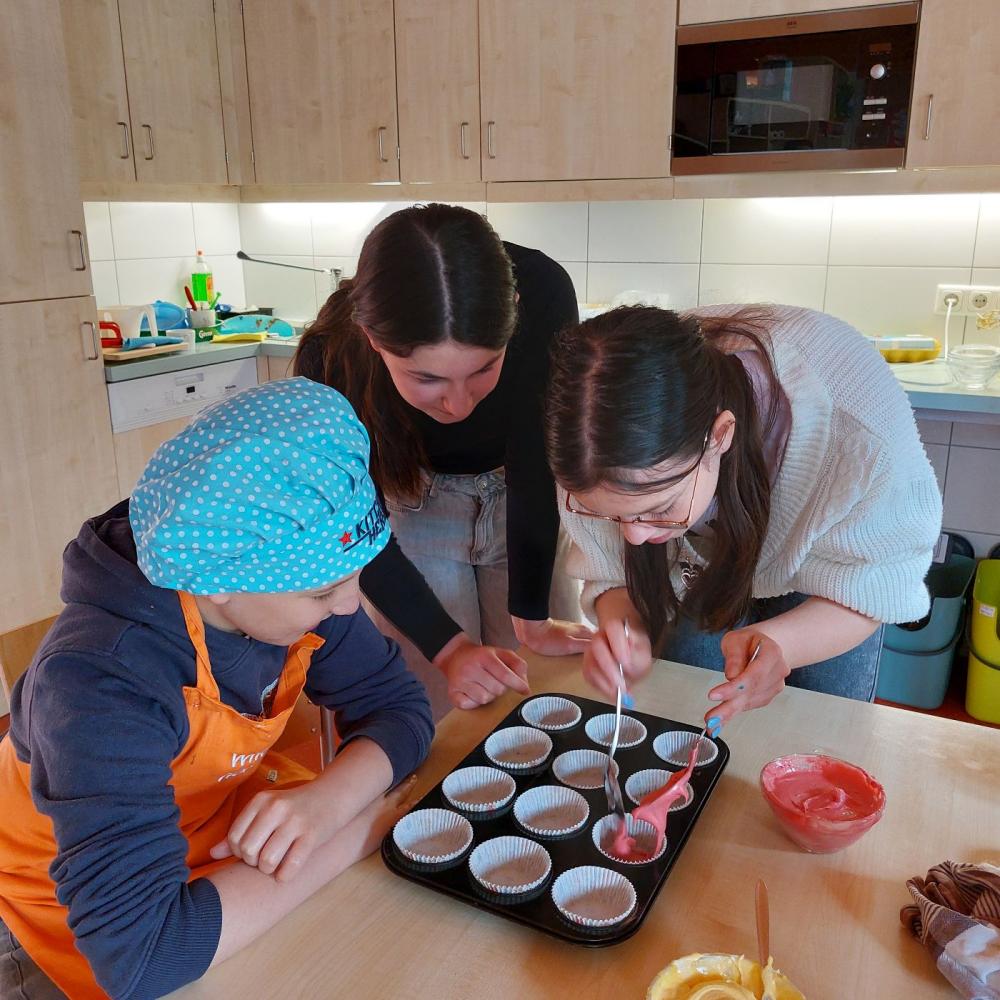 Während des Backens herrschte eine fröhliche Stimmung und alle haben fleißig mitgeholfen. Es war schön zu sehen, wie gut wir im Team zusammengearbeitet haben. Besonders viel Spaß hat es gemacht, den Teig zu formen und zu verzieren. Am Ende duftete es im ganzen Raum nach unseren Muffins.