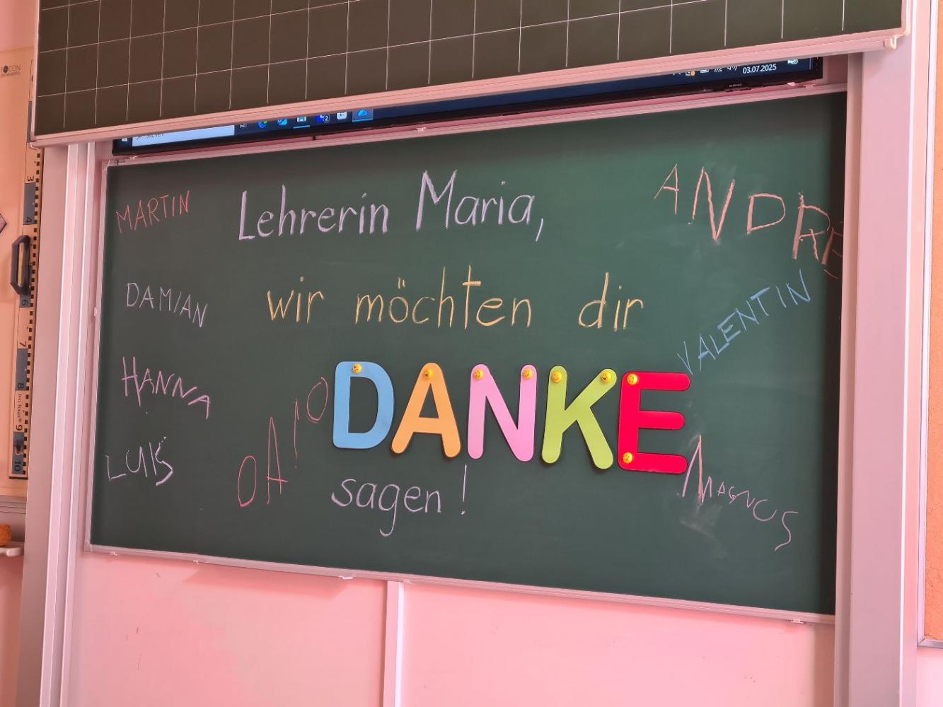 Ein großes Dankeschön an Maria für ihren Einsatz, ihre Kreativität und die langjährige tolle Arbeit an unserer Schule.