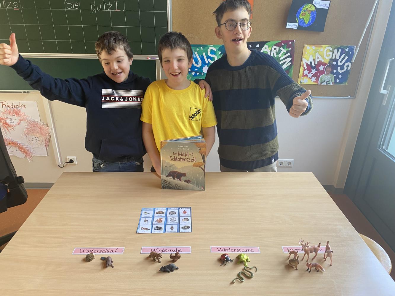 In den kalten Wintermonaten haben es viele Tiere nicht leicht. Doch sie haben clevere Strategien entwickelt, um die frostige Zeit zu überstehen. Die Kinder der Klasse 1 haben sich intensiv mit den verschiedenen Überwinterungsstrategien beschäftigt: Winterschlaf, Winterruhe und Winterstarre. Spielerisch und kreativ haben sie entdeckt, wie Tiere sich anpassen, um Kälte und Nahrungsknappheit zu überstehen.